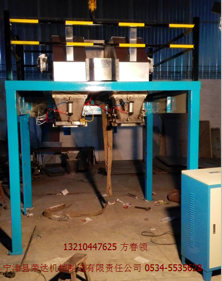 自動稱重包裝機的外形尺寸:長度2.15米,寬度1.85米,高度2.6米。