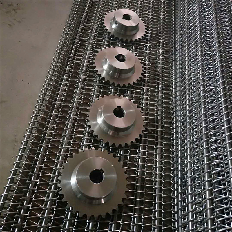 鏈條式網(wǎng)帶由一般的輸送網(wǎng)帶兩側(cè)加裝鏈條及橫向支撐桿而成,鏈輪傳動(dòng),網(wǎng)帶寬帶固定不變形。調(diào)整網(wǎng)帶不