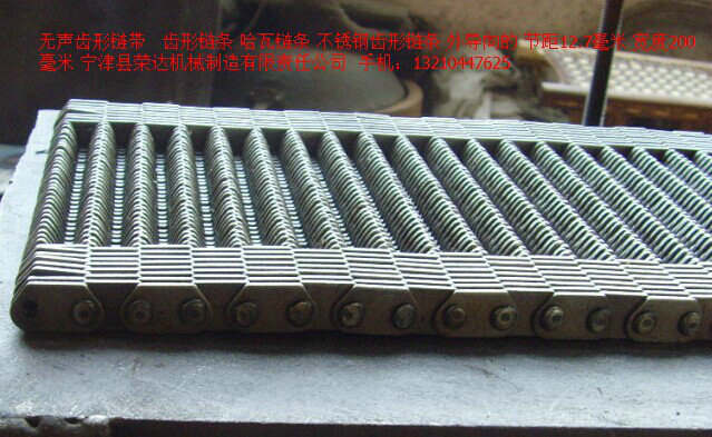 寧津縣榮達(dá)機(jī)械制造有限責(zé)任公司銷售無聲齒形鏈條,無聲齒形鏈帶,配套與美國EMHART和意大利BOTTERO行列式制瓶機(jī)上。用來輸送玻璃制品,玻璃瓶子,玻璃罐,玻璃容器等等。