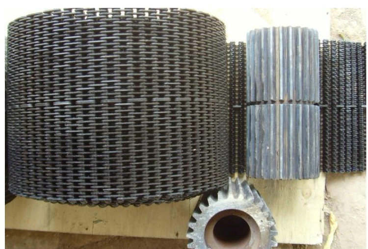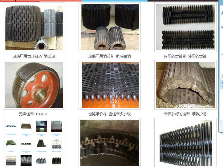 無聲齒形鏈帶:一種輸送帶,是玻璃廠或者陶瓷制品廠用來輸送玻璃制品器皿,玻璃容器或者陶瓷廠用來輸送陶瓷瓶罐,陶瓷制品的輸送帶。利用無聲鏈輪帶動(dòng),具有無噪音,耐磨,抗拉伸,輸送面平穩(wěn),耐高溫。