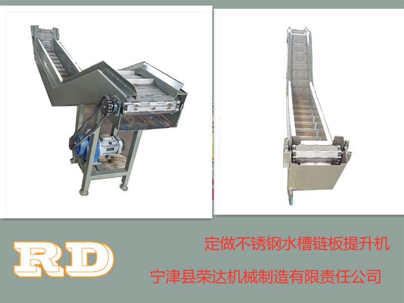給客戶定做的不銹鋼材質(zhì)鏈板輸送機,長度4.3米 寬度50公分 高度一頭高1.1米 一頭高50公分,工期5天。
