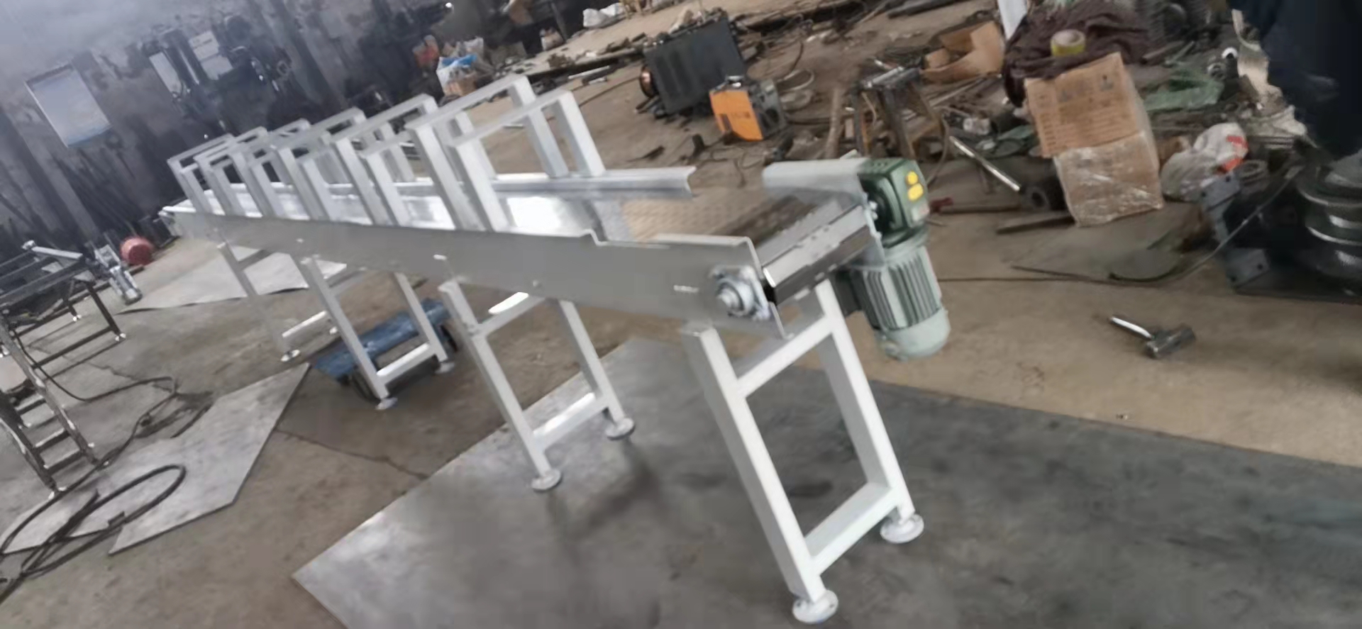 鍛造件鏈板輸送機(jī)是直接輸送高溫鍛造件的,其輸送帶必須能不怕熱,不變形,還耐高溫很強(qiáng)才可以承載鍛造件。我們采用的是耐熱的不銹鋼鏈板輸送帶。根據(jù)寬度不同,有平頂鏈鏈板輸送帶,合頁(yè)鏈板輸送帶和槽鋼鏈板輸送帶。已標(biāo)準(zhǔn)的頂板鏈或合頁(yè)鏈板輸送帶為承載面,以馬達(dá)減速機(jī)做動(dòng)力傳動(dòng)。