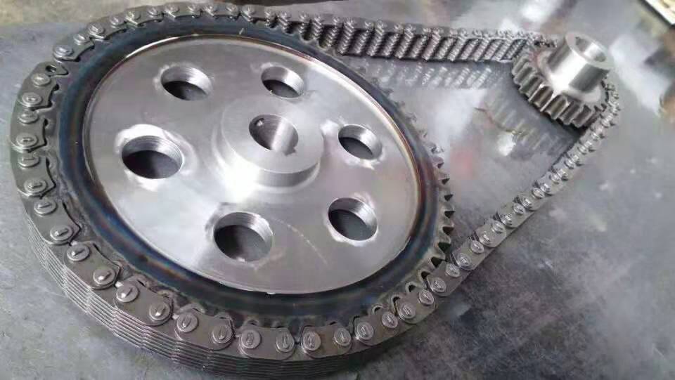 無聲鏈 齒形鏈輪  無聲鏈:也叫齒形鏈條,采用無聲齒形鏈輪帶動(dòng)運(yùn)轉(zhuǎn)傳動(dòng)。寧津縣榮達(dá)機(jī)械制造有限責(zé)任公司定做各種無聲齒形鏈條,無聲齒形鏈輪。我們根據(jù)客戶自己的情況,客戶選型成功,我們根據(jù)客戶的數(shù)據(jù)非標(biāo)定做各種齒形鏈條和無聲齒形鏈輪。齒形鏈條節(jié)距4.7625,6.35  9.525  12.7  15.875  19.05  25.4  31.75  38.1毫米的鏈條都能做,無聲齒形鏈輪根據(jù)客戶的齒數(shù)和外徑,內(nèi)孔,鍵槽定做。無聲齒形鏈條的獨(dú)特優(yōu)點(diǎn):高速,無噪音,高承載傳動(dòng)能力,轉(zhuǎn)矩大等等優(yōu)點(diǎn),逐漸取代精密滾子鏈條和同步帶。