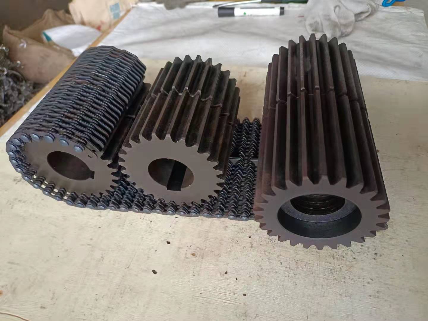 無聲鏈 齒形鏈輪 無聲鏈:也叫齒形鏈條,采用無聲齒形鏈輪帶動(dòng)運(yùn)轉(zhuǎn)傳動(dòng)。寧津縣榮達(dá)機(jī)械制造有限責(zé)任公司定做各種無聲齒形鏈條,無聲齒形鏈輪。我們根據(jù)客戶自己的情況,客戶選型成功,我們根據(jù)客戶的數(shù)據(jù)非標(biāo)定做各種齒形鏈條和無聲齒形鏈輪。齒形鏈條節(jié)距4.7625,6.35 9.525 12.7 15.875 19.05 25.4 31.75 38.1毫米的鏈條都能做,無聲齒形鏈輪根據(jù)客戶的齒數(shù)和外徑,內(nèi)孔,鍵槽定做。無聲齒形鏈條的獨(dú)特優(yōu)點(diǎn):高速,無噪音,高承載傳動(dòng)能力,轉(zhuǎn)矩大等等優(yōu)點(diǎn),逐漸取代精密滾子鏈條和同步帶。