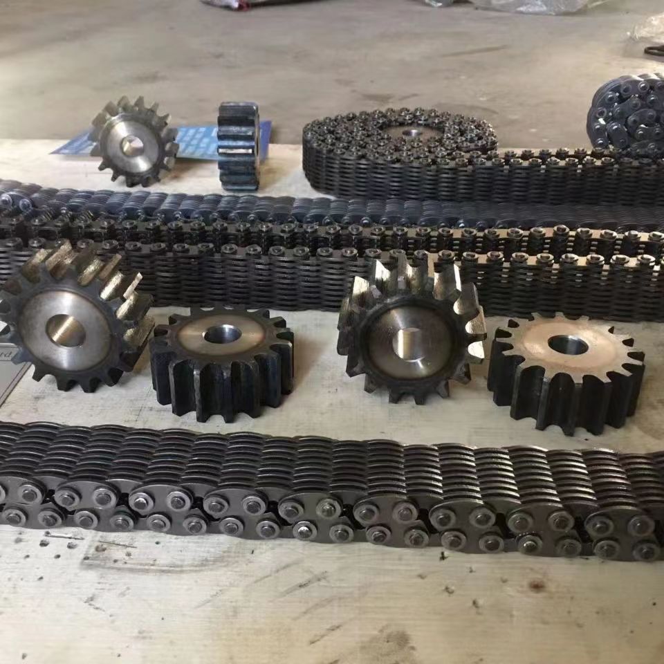 無聲鏈 齒形鏈輪  無聲鏈:也叫齒形鏈條,采用無聲齒形鏈輪帶動運(yùn)轉(zhuǎn)傳動。寧津縣榮發(fā)齒輪廠定做各種無聲齒形鏈條,無聲齒形鏈輪。我們根據(jù)客戶自己的情況,客戶選型成功,我們根據(jù)客戶的數(shù)據(jù)非標(biāo)定做各種齒形鏈條和無聲齒形鏈輪。齒形鏈條節(jié)距4.7625,6.35  9.525  12.7  15.875  19.05  25.4  31.75  38.1毫米的鏈條都能做,無聲齒形鏈輪根據(jù)客戶的齒數(shù)和外徑,內(nèi)孔,鍵槽定做。無聲齒形鏈條的獨(dú)特優(yōu)點:高速,無噪音,高承載傳動能力,轉(zhuǎn)矩大等等優(yōu)點,逐漸取代精密滾子鏈條和同步帶。
