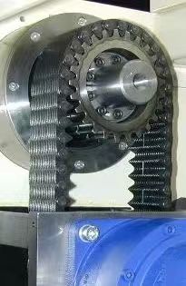 高速齒形鏈(哈瓦鏈)對(duì)于傳遞功率為50~6000馬力,超過(guò)每分鐘3000轉(zhuǎn)的中至高速,要求設(shè)計(jì)緊湊的應(yīng)用場(chǎng)合,它是理想的傳動(dòng)鏈。哈瓦鏈?zhǔn)且环N高精度齒形鏈,兼有皮帶的平穩(wěn)性和鏈條傳動(dòng)緊湊性、經(jīng)濟(jì)性與長(zhǎng)的使用壽命。其特點(diǎn)在于通過(guò)鉸鏈的銷(xiāo)軸和擺瓦間的滾動(dòng)作用減少磨擦和實(shí)現(xiàn)節(jié)距伸長(zhǎng),其結(jié)果是傳遞功率能力的有效增長(zhǎng)和減少多邊形效應(yīng)的危害。鏈板是經(jīng)過(guò)噴丸和預(yù)應(yīng)力處理,從而有較大的承載能力。具有三倍于無(wú)聲鏈的功率能力,具有較高的速度范圍,在滾子鏈工作能力急劇下降的高速區(qū),哈瓦鏈的能力卻是不斷提高。所以哈瓦鏈在許多場(chǎng)合具有無(wú)可爭(zhēng)辯的,令人矚目的優(yōu)點(diǎn)。適用于所有應(yīng)用高速原動(dòng)機(jī),例如柴油機(jī)和,氣輪機(jī)的功率傳動(dòng)等。